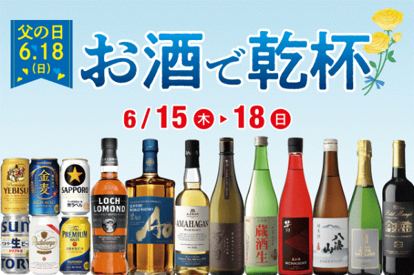 全国に188店舗で酒の専門店をチェーン展開する株式会社リカーマウンテン(本社:京都市)は、6月15日(木)~18日(日)の4日間、深夜営業店舗などを除く一部店舗で「6/18(日)父の日!お酒で乾杯セール」を開催いたします。