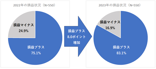 損益がプラスになっている人は2022年より8.0ポイント増加
