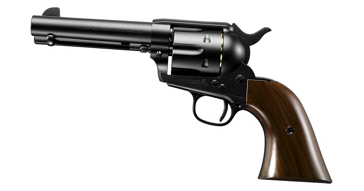 SAA.45(シングル・アクション・アーミー)のシリーズ内で完成度の高さに定評がある2ndジェネレーションモデル。その中でもひと際人気の高い、4 3/4インチの銃身長で民間向けモデルである「シビリアン」を「アーティラリー」※1に続き、東京マルイがエアーリボリバー プロで再現!