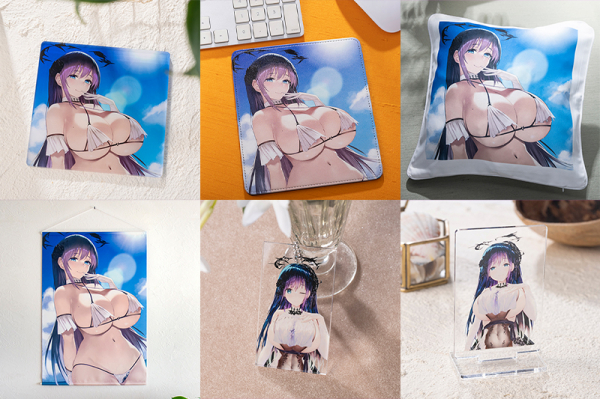 イラストレーター『舷』さん書きおろしのイラストを使用したアクリルコースターやマウスパッドなど、計6種のオリジナルグッズは、2023年8月7日までの期間限定で販売しております。