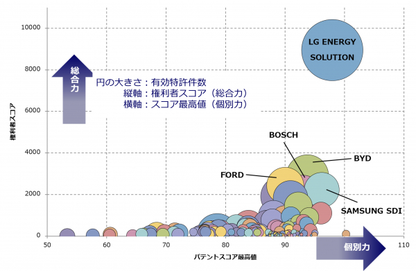 集計をした結果、「総合力ランキング」は、1位 LG ENERGY SOLUTION(韓)、2位 BYD(中)、3位 FORD MOTOR(米)となりました。