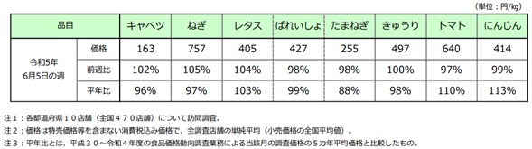 ※2「食品価格動向調査(野菜)」(農林水産省 2023年6月5日の週)