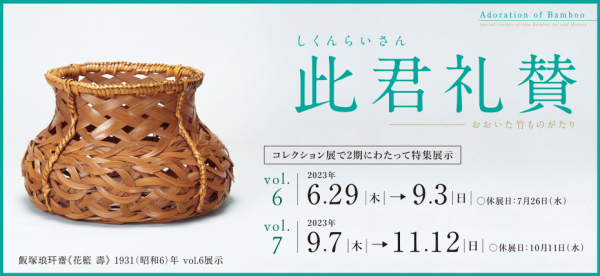 当館では、竹工芸を大分ならではの文化風土から生まれた主要な地域文化資源と位置付け、コレクション展における特集展示「此君礼賛-おおいた竹ものがたり」をシリーズとして開催いたします。
