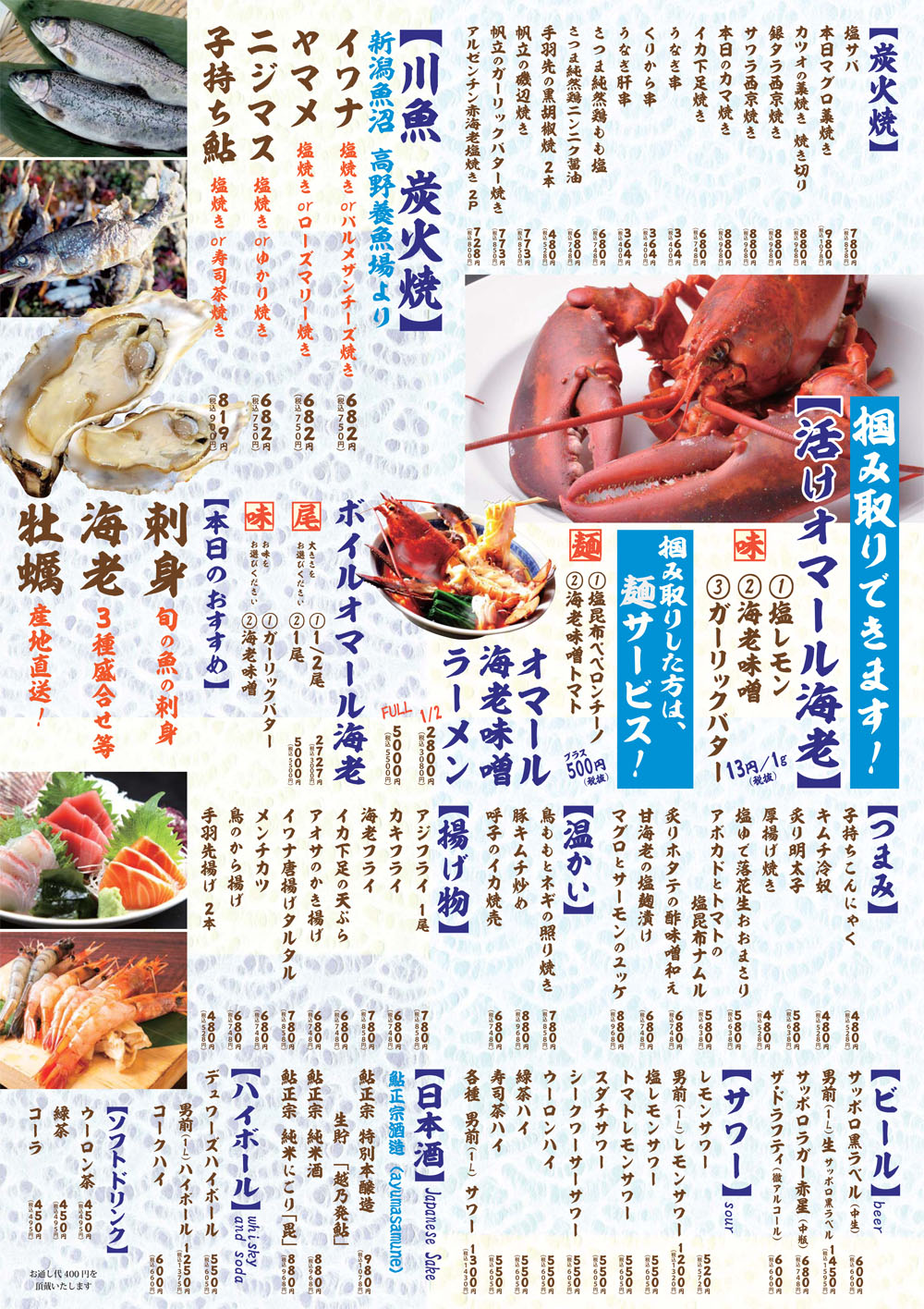 ・お酒は、超辛口日本酒をはじめ、強炭酸を利用したハイボールやレモンサワーをきんきんに冷やして、ご提供しています。