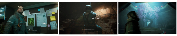 本作ではゲーム開始からエンディングまでカメラは一切途切れず、ロード時間無しに全てのシーンをシームレスにプレイすることが可能です。また、 ゲーム進行の手がかりとなる情報や記録は、ゲーム内の端末のスクリーンや腕に装着した機器を通して提供されます。