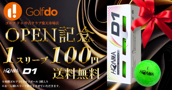 株式会社ゴルフ・ドゥ(本社 さいたま市 代表取締役社長:佐久間功)はきたる 9 月 1 日(金)の「ゴルフ ドゥ 中古クラブ楽天市場店」グランドオープンに先駆け、「オープン記念イベント(以下、本イベント)」として、8 月 1 日(火)よりホンマゴルフ D-1 ボールを 1 スリーブ 100 円で販売します。なお、本イベントは送料無料で実施します。