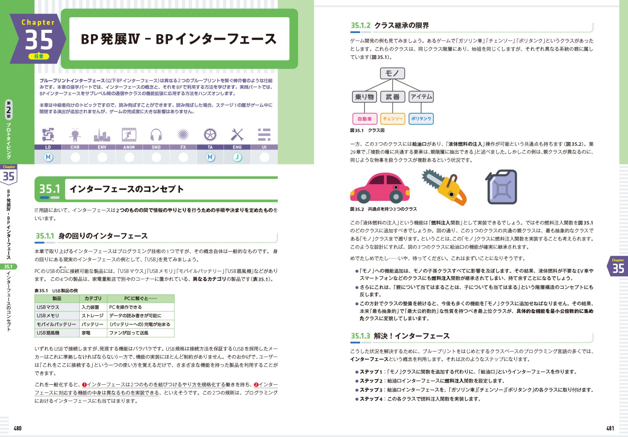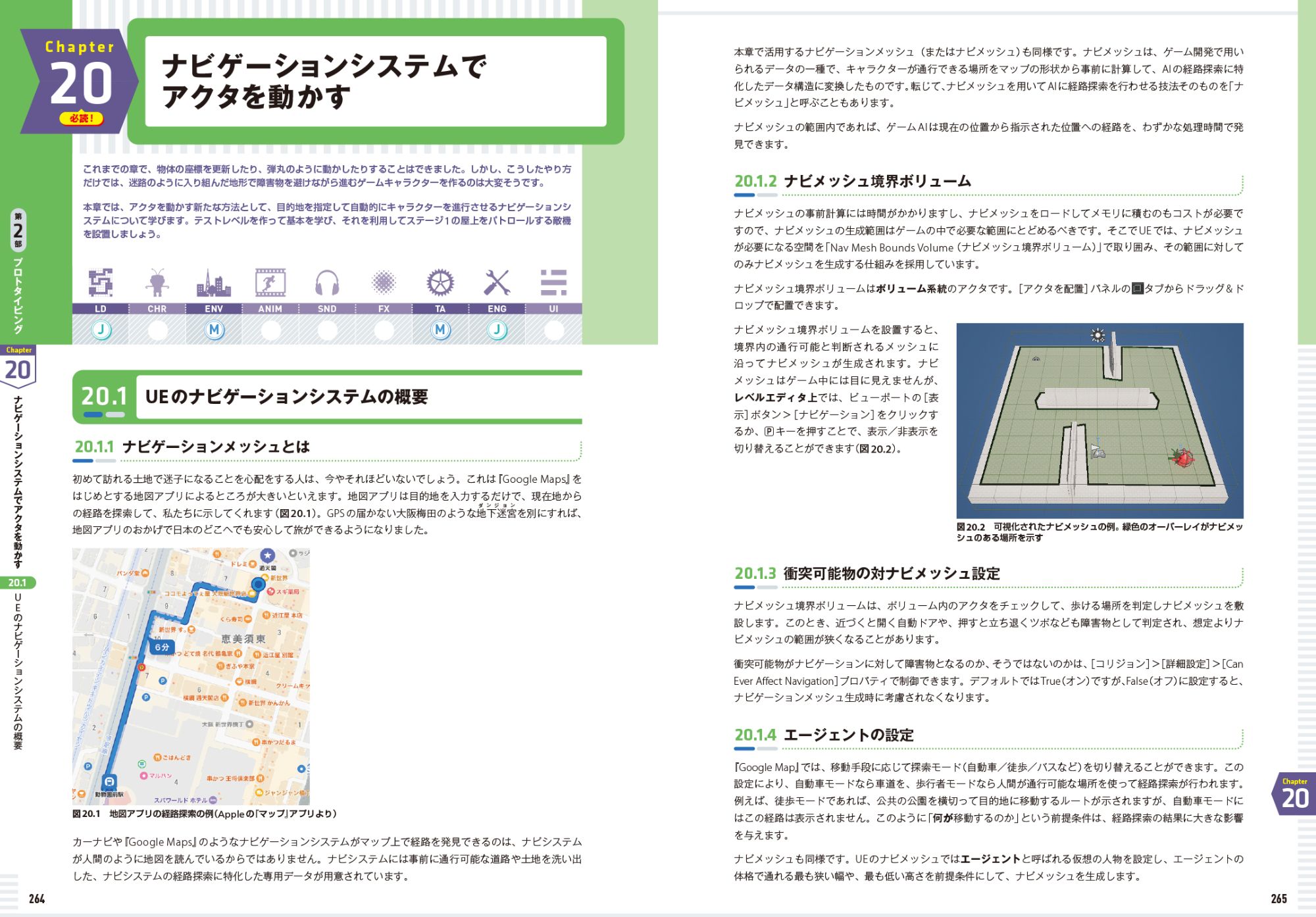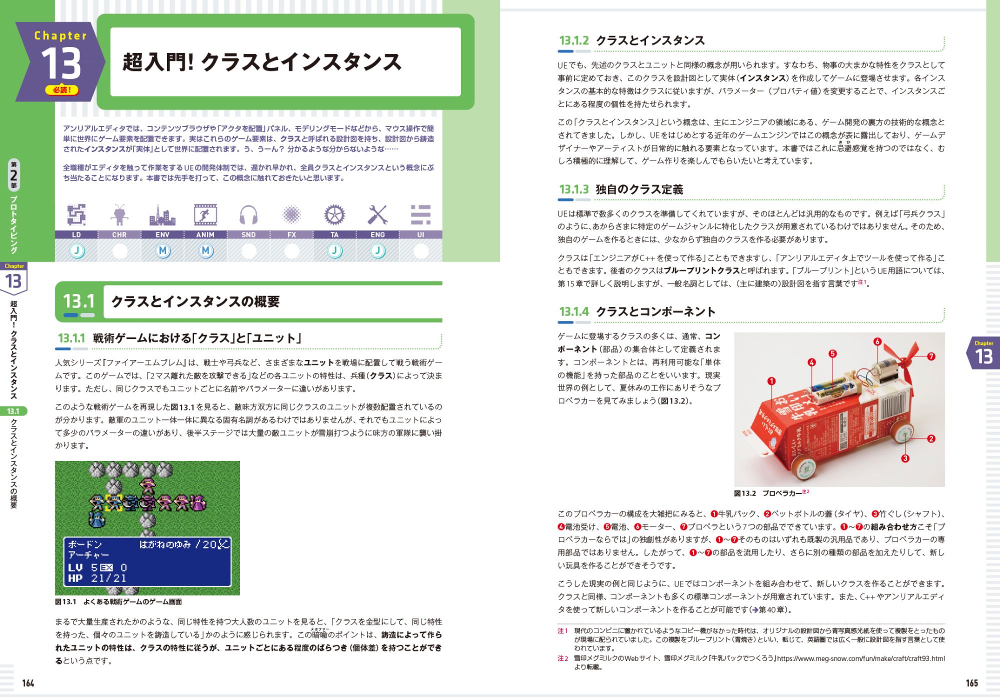 ・座学パートと実践パートに分かれたおよそ60章の大ボリュームで、プロトタイプからプロダクションまでの現代的なゲーム開発プロセスを擬似体験