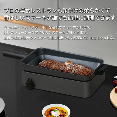 自動メニューの「ステーキ」を選択すればわずか15分で、極厚のジューシーなアメリカンステーキが味わえます。