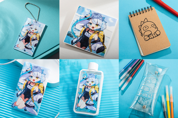 イラストレーター『のいみね』さん書きおろしのイラストを使用したモバイルバッテリーやアクリルキーホルダーなど、計6種のオリジナルグッズは、2023年9月7日までの期間限定で販売しております。
