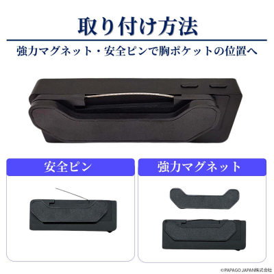 胸ポケットに安全ピンやマグネットで簡単に固定できる薄型軽量のセキュリティーレコーダーです。固定式の防犯カメラでは記録を残せない場所や勤務中に突然発生する犯罪行為や暴力などに対する撮影が行えます。他にも、工場や工事などの現場作業などの映像で引き継ぎを行ったり、イベントでの警備や防犯記録、機内での防犯、ショッピングフロアでの目立たぬ警備など、突然の暴力への備えとしてあらゆる場面での記録が今後想定されます。