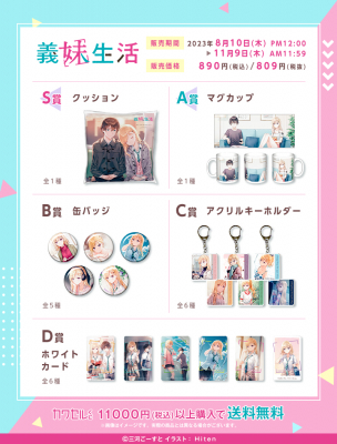 株式会社インクルーズ(東京都渋谷区、代表取締役社長 山﨑 健司)が企画・運営するフィジカルグッズのオンラインくじ「カワセルくじ」にて、8月10日(木)より、「義妹生活」のくじが発売開始になりましたことをご報告させていただきます。