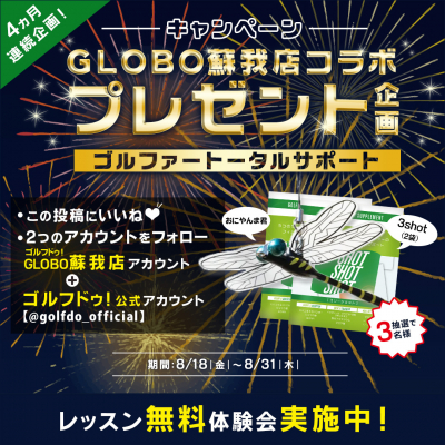 ■応募方法:当社公式Instagram(@golfdo_official)とゴルフドゥ!GLOBO蘇我店(@golfdo_globosoga)をフォローの上、該当投稿にいいね