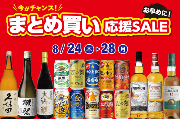 全国に188店舗で酒の専門店をチェーン展開する株式会社リカーマウンテン(本社:京都市)は、8月24日(木)~28日(月)の5日間、深夜営業店舗など一部を除く店舗で「まとめ買い応援SALE」を開催いたします。