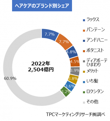 ◆分野別にみると、頭髪化粧品市場全体の5割以上を占めるヘアケア市場では、従来マスブランドを中心に拡大してきたが、2010年代後半以降、スモールマス化が加速したことで「YOLU」(I-ne)や「エイトザタラソ」(ステラシード)など高価格帯の新興ブランドがシェアを広げている。またこれら新興ブランドは、ナイトケアや保水美容など新たなコンセプトを打ち出すことで、ヘアケア市場における地位確立に成功しており、近年はキープレーヤーの勢力図に大きな変化がみられている。