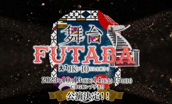 2023年10月13日(金)~月15日(日)の3日間、CBGKシブゲキ!! (東京都渋谷区道玄坂2-29-5 ザ・プライム 6階)にて一般社団法人日本モデルウォーキング協会主催公演、FUTABA(JKが10万人を救う?) の上演が決定しました。