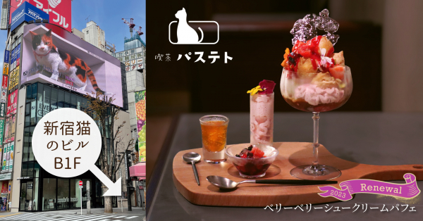 株式会社アズフードシステムズ(本社:東京都中央区、代表取締役:森田威)が運営する、新宿駅東口すぐの喫茶店「喫茶 パステト」は、シグネチャーメニューの『ベリー&ピスタチオのパフェ』を、『ベリーベリーシュークリームパフェ』へリニューアルします。輝く飴細工とエディブルフラワーで飾られた外見は華やかで、ベリーとジャスミンティーが織りなすオリエンタルな味わいを楽しめるパフェです。2023年9月15(金)より発売いたします。