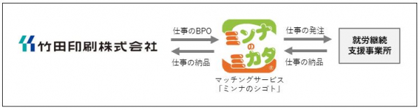 竹田印刷株式会社(本社:愛知県名古屋市、代表取締役社長:木全幸治、以下:当社)は、就労継続支援事業所との業務マッチングプラットフォームを運営する株式会社ミンナのシゴト(本社:栃木県鹿沼市、代表取締役社長:川田有子)とBPO事業領域で10月10日から協業します。