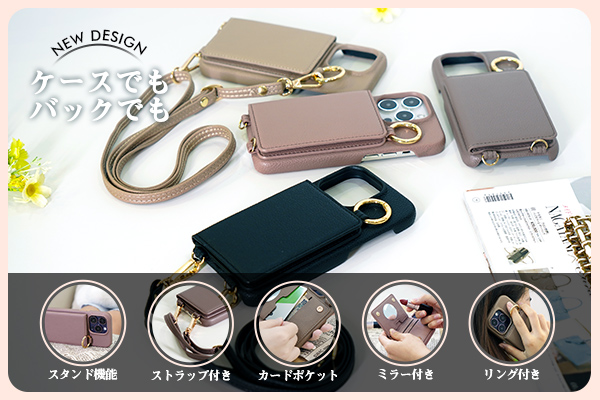 ■ 全4色 iPhone15 スマホ ショルダー ストラップ カードポケット付き