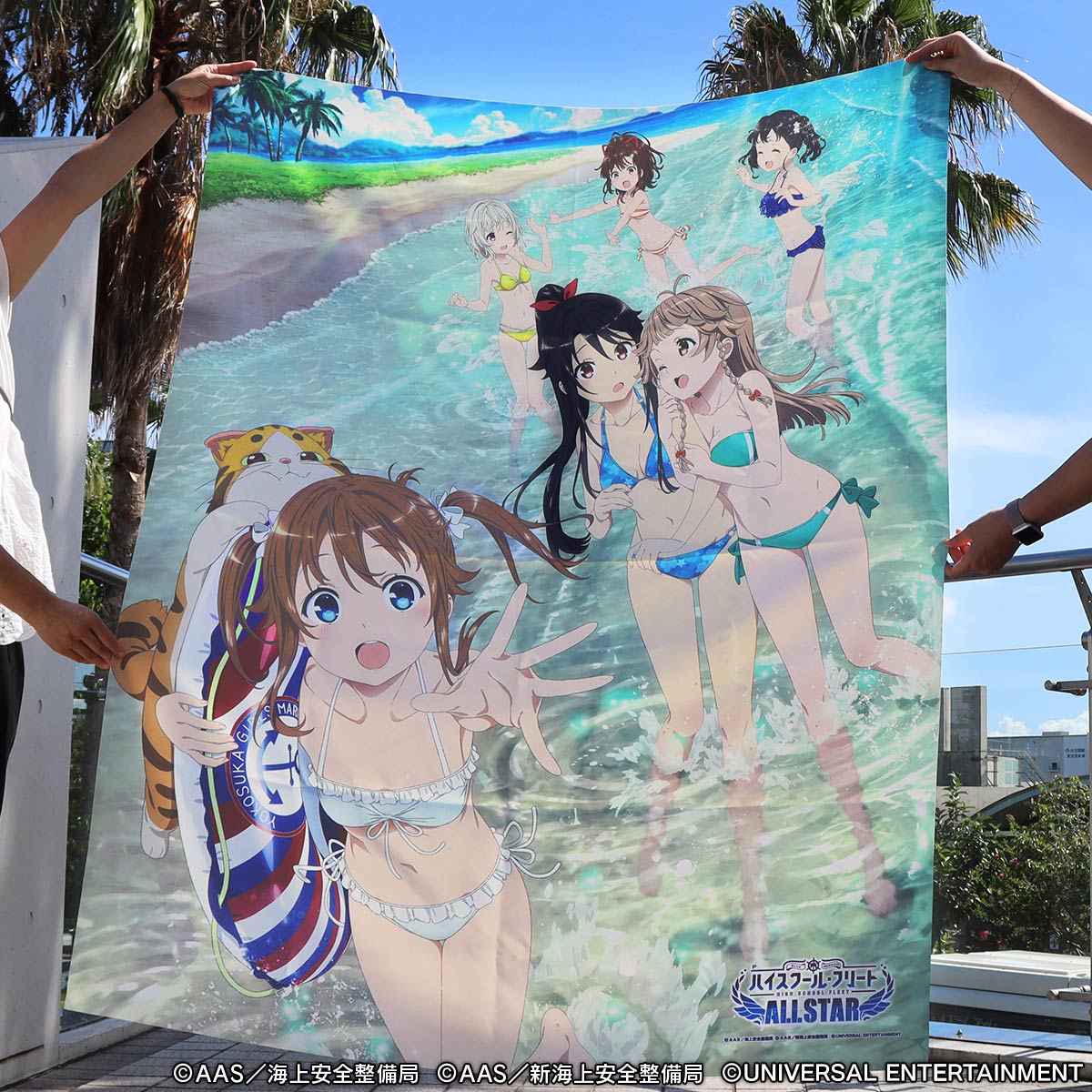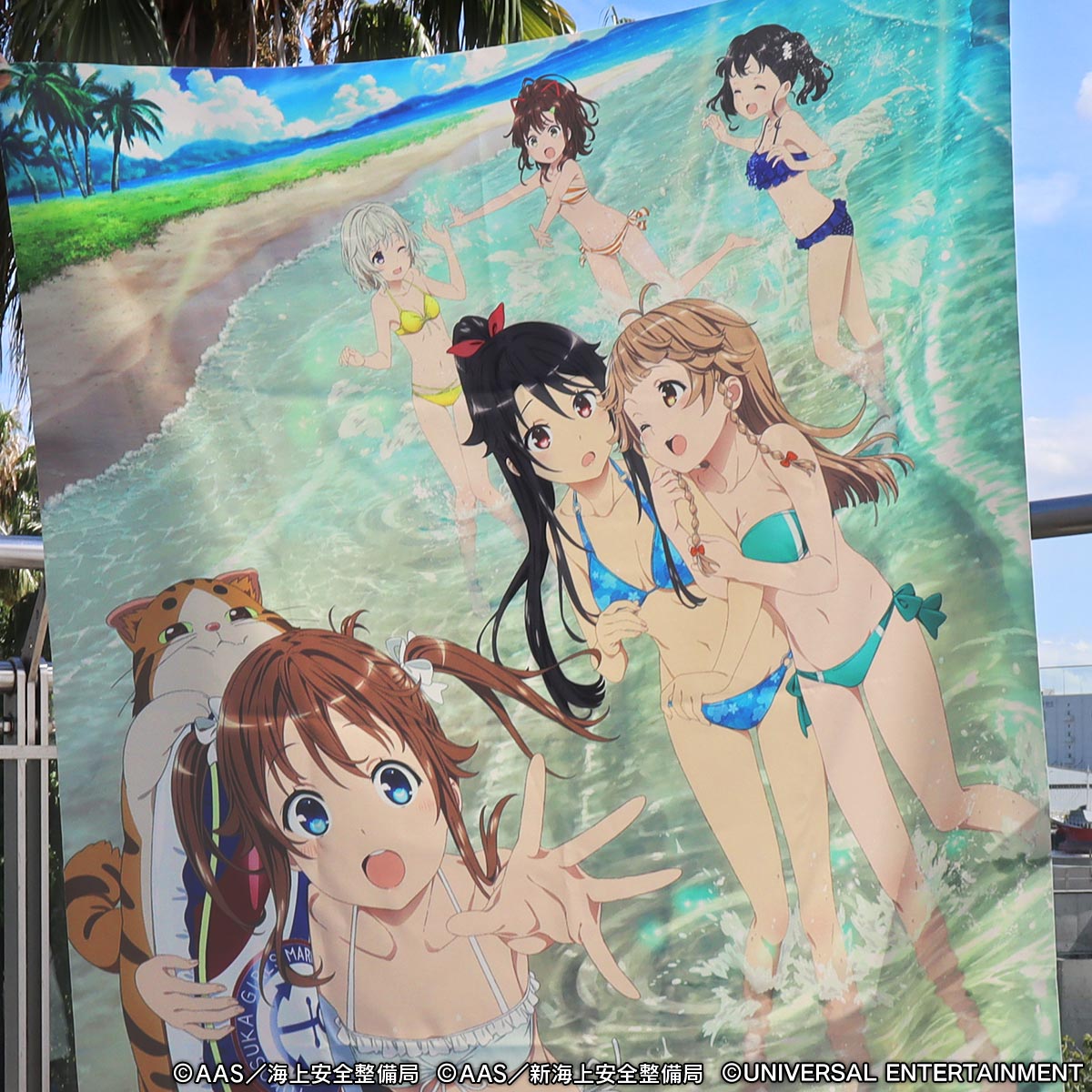 水着の明乃たちと五十六が浜辺で遊ぶ、可愛さいっぱいのタペストリーが登場!