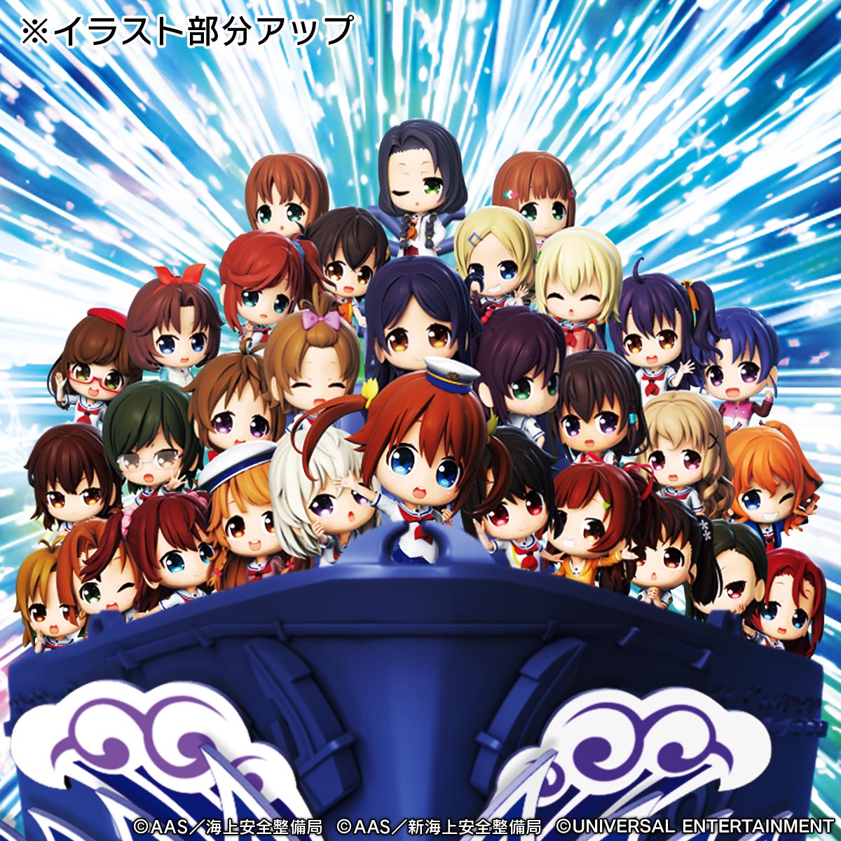 イラストは「はいふりんく」の全員集合シーン!31人が勢ぞろいした晴風が今、華やかに出航! ヨーソロー♪