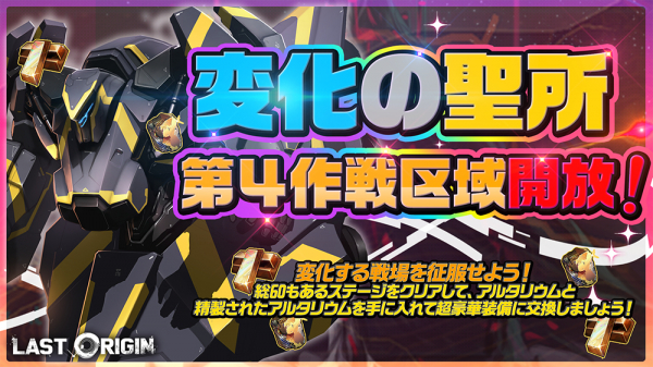 今回のアップデートで変化の聖所に新規エリアが開放となりました!第4作戦区域は三安の秘密研究団地として、60のステージで構成されています。三安の秘密研究団地を偵察して、「アルタリウム」と「精製されたアルタリウム」を手に入れましょう♪