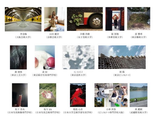 出展作家名(学校名):李 金陽(大阪芸術大学)、山田 麗音(京都芸術大学)、井橋 杏樹(女子美術大学)、張 景翔(多摩美術大学)、原 響希(東京藝術大学)、森 凌我(東京工芸大学)、袁 辰(東京綜合写真専門学校)、ハン セイエイ(東京造形大学)、胡 揚(東京ビジュアルアーツ)、松下 奈央(日本写真映像専門学校)、坂々 なな(日本写真芸術専門学校)、菊池 心音(日本大学芸術学部写真学科)、小林 世弥(ビジュアルアーツ専門学校大阪)、黄 麗穎(武蔵野美術大学)