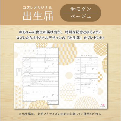 【「コズレオリジナル 出生届(和モダン ベージュ)」】