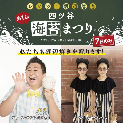 磯辺焼き配布にはフォーリンデブはっしーさん、りんか&あんなちゃんも参加!10/7(土)当日現地で会えるかも!