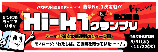 漫画背景に特化した塾・アシスタント背景美塾MAEDAX派を運営する株式会社MAEDAXラボ(本社:東京都渋谷区・代表取締役:前田耕作)は、その年の漫画背景No.1を競うイベント『Hi-K1グランプリ2023』を開催し、2023年12月23日(土)の決勝戦にて、プロ・アマチュア各部門のグランプリを決定します。
