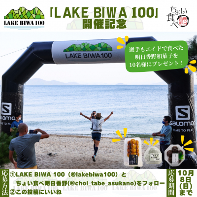 この度、同レースの開催を記念して、2023年9月29日より、お出かけ支援アカウントのちょい食べ明日香野と「LAKE BIWA 100」公式Instagramにて「LAKE BIWA 100開催記念」キャンペーンを開始しました。