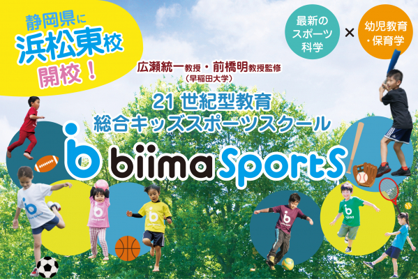 21世紀型総合キッズスポーツスクール「biima sports(ビーマスポーツ)」(社名:株式会社 biima、本社:東京都渋谷区、代表取締役:田村恵彦)は、2023年10月に、パートナーシップ契約を締結している「一般社団法人Grow Up Academy」(社名:一般社団法人Grow Up Academy、所在地:静岡県浜松市、代表理事:島沢翔哉)と静岡県に浜松東校を新規開校いたします。静岡県は4校目となり、全国250カ所以上の展開となります。