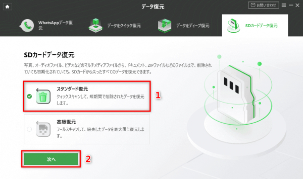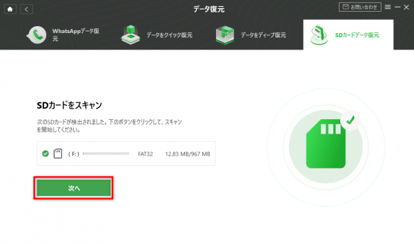 Step4.SDカードが検出してから、「次へ」をクリックしてSDカードをスキャンします。