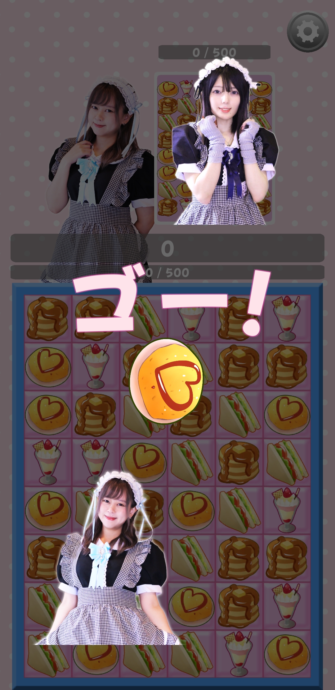 「メイドと3マッチパズル」は、池袋のメイドカフェ「SRMカフェ」に実在するメイドさん4人がゲーム中に登場します。個性豊かなメイドさんと対戦できる「パズル」モードの他に、オンライン中の人とランダムマッチ対戦できる「オンライン」モード、友人や知り合いとネットワーク対戦できる「あいことば」モードがあります。