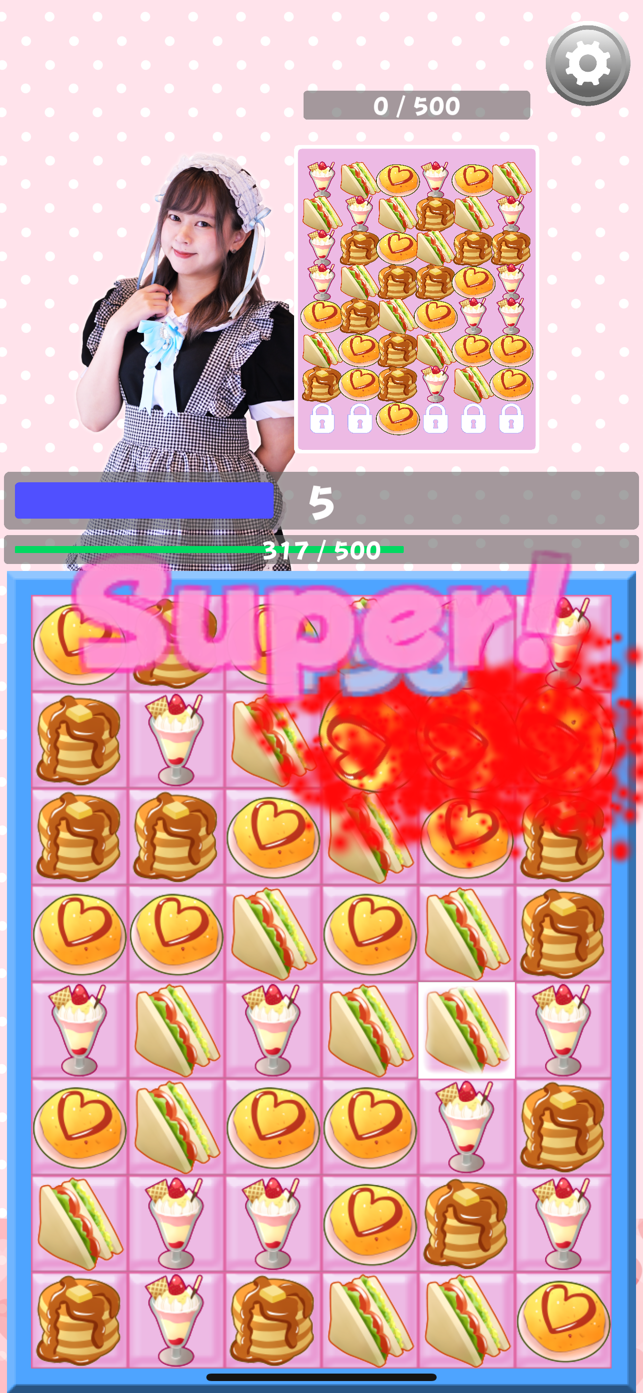 「メイドと3マッチパズル」は、同じ料理のブロックを3つ揃えて消すパズルゲームで、誰でも簡単にシンプルな操作で楽しむことができます。プレイヤーは推しのメイドさんと一緒にパズルを解き、ハートマークのメーターで親密度を高めていく感覚を感じながらゲームを進められます。油断しているとブロックがロックされますが、パズルをクリアすることでロックを解除することができます、