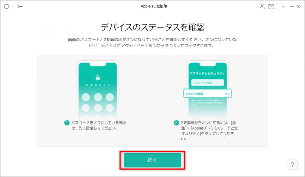 Step4.デバイスのステータスを確認します。そして「続く」をクリックします。