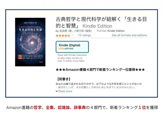 アマゾン書籍4部門で新着ランキング1位を獲得した本「古典哲学と最新科学が紐解く生きる目的と智慧」は、生きる真の意味と生きる上での智慧・洞察をまとめた一冊で、上記の究極の問いへの答えを探求しています。