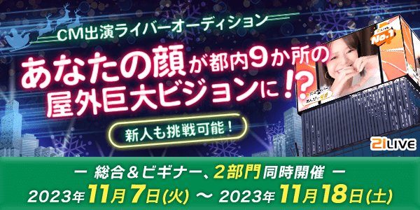 11月7日(火)からは、21LIVEのビジョンCM・クリスマスバージョンへの出演権を賭けた『CM出演ライバー対象オーディション』が始まります!