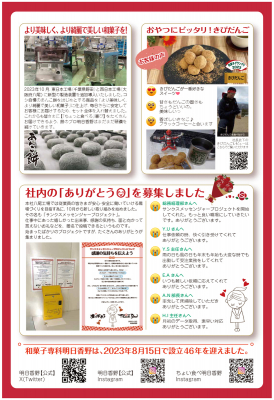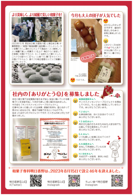 和菓子専科・明日香野が毎月発行している広報誌「明日香野だより」は、明日香野とお取引いただいている関係者様にその時期にあった明日香野関係のニュースをお知らせしています。
