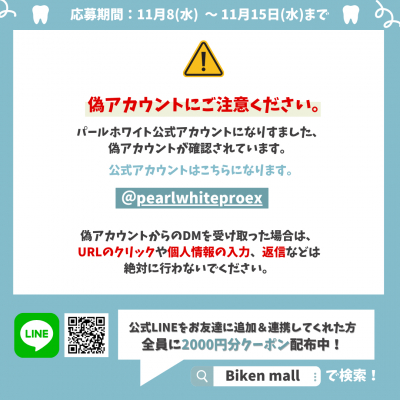 抽選のうえ、当選者の方へのみInstagramのダイレクトメッセージでご連絡させていただきます。公式Instagramアカウント@pearlwhiteproexのフォローを外されておりますと当選連絡ができなくなりますので、ご注意ください。