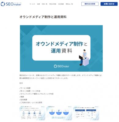 SEO対策(国内・海外)の専門会社のアドマノ株式会社(東京都豊島区、代表取締役社長:天野剛志)は、サービスサイト「東京SEOメーカー」において、オウンドメディア制作と運用資料ダウンロードページを11月6日に新規リニューアル公開しました。
