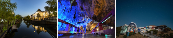 岡山県の南西部に位置し、アジア最大級の望遠鏡を備える京都大学岡山天文台や国立天文台岡山物理観測所、岡山天文博物館といった天文施設が集まる「天文のまち」です。自然と歴史を感じることができるとともに、地元で水揚げされた新鮮な魚介類や特産品である地酒、手延べ麺、桃などを堪能することができます。