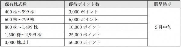 株主優待制度の内容につき変更が生じた場合には、速やかに開示の上、お知らせいたします。