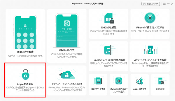 ステップ1.コンピュータでAnyUnlockを起動し、ホームページでAppleIDのロック解除モードを選択します。
