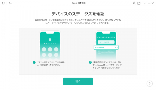ステップ4.「今すぐロックを解除」をクリックした後、デバイスのステータスをチェックして確認する必要があります。そして、「続行」ボタンをクリックしてください。