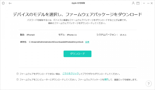 ステップ5.デバイスのステータスを確認した後、AnyUnlockはデバイスのモデルを自動的に検出します。提供されているファームウェアのバージョンを選択し、「ダウンロード」ボタンをクリックしてください。