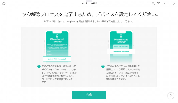 ステップ7.プロセスが完了すると、以下のインターフェースが表示されます。ソフトウェアページの指示に従ってデバイスをセットアップし、ロック解除プロセスを完了してください。