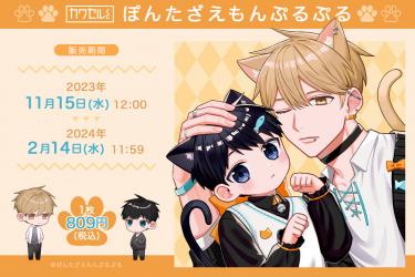 株式会社インクルーズが贈る「カワセルくじ 乙女部」の最新作は、「ぽんたざえもんぷるぷる」さんのくじです。S賞アクリルブロックは特別な描き下ろしイラスト、その他の賞はSNSで投稿された貴重なイラストより厳選致しました。カズマや津賀たちのグッズが手に入るチャンスを是非「カワセルくじ」でお楽しみください!