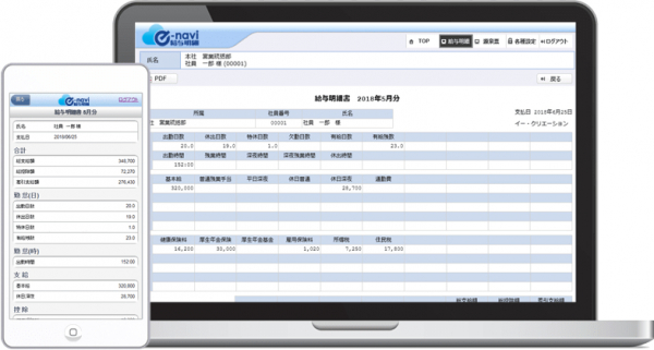 給与計算ソフトで作成された給与明細書を電子化して、WEB閲覧するASPサービスです。