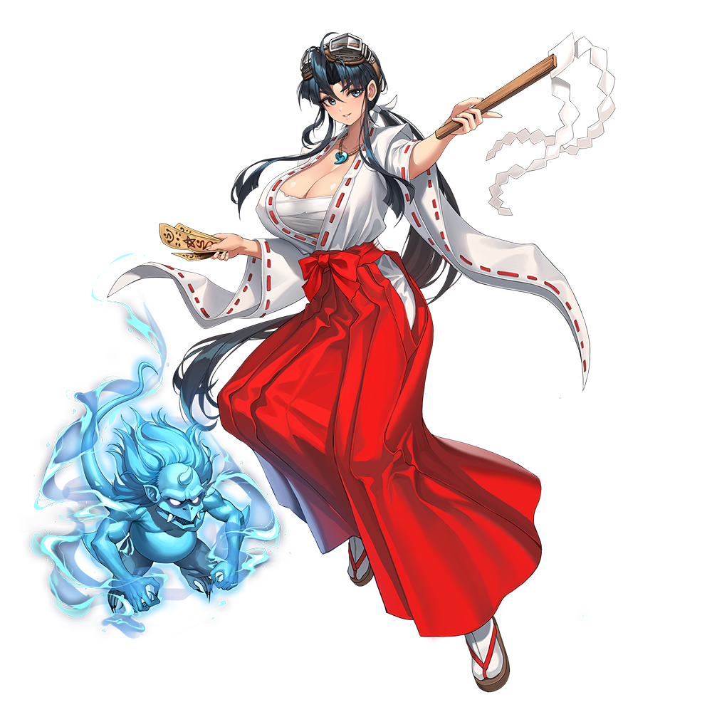 私の名前は富樫こより。戦国ブレードの主人公の1人だよ。私は歴代最強の霊能力を持つ巫女と言われてて、修行のため世界中を旅してたわ。……お金にがめついじゃじゃ馬は出てけって神社から追い出されたわけじゃないからね!こほん!とにかく、修行しながらこの世を滅ぼそうとする邪神と悪党の陰謀を打ち破ってきた!この空を飛べるようにしてくれる飛蒼石もその戦いの中で手に入れたんだ!今までの活躍を全部話そうと思ったら一週間くらいかかるんじゃない?