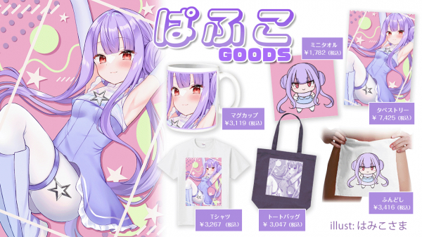 イラストレーター『はみこ』さん書きおろしのイラストを使用したTシャツや『ぱふこ』さんご本人描きおろしのミニタオルなど、計6種のオリジナルグッズは、2023年12月31日(日)までの期間限定で販売しております。